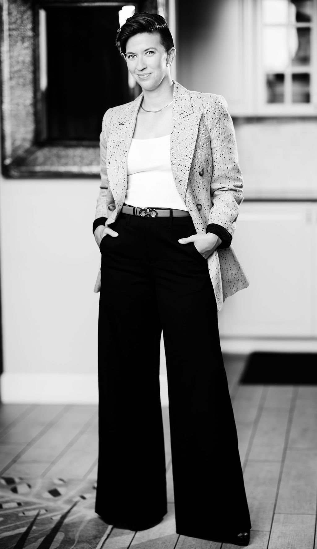 Her path here wasn't conventional. At eighteen, she was the youngest postgraduate from the London Academy of Music & Dramatic Art and stood in for her congresswoman in the U.S. House of Representatives. She directed over seventy-five stage productions, performed at the London Olympics, made films that landed on Netflix, and became a top Nordstrom stylist by understanding that how people present themselves shapes how they move through the world.